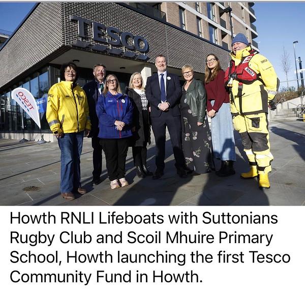 As part of its community support programme, Tesco is currently backing three local causes: Howth Primary School, the RNLI, and your own Suttonians Rugby Club.