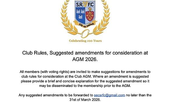 Any suggested amendments to be forwarded to secsrfc@gmail.com no later than the 31st of March 2026.