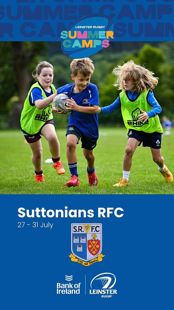 Leinster Rugby Camps are back in Suttonians RFC again from 27-31 July. 09.00-1330.